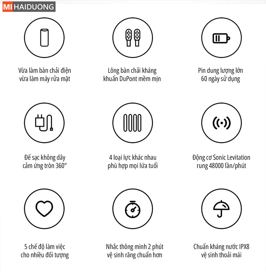 | Tính năng | Bàn chải đánh răng vệ sinh răng, rửa mặt, vệ sinh lưỡi |