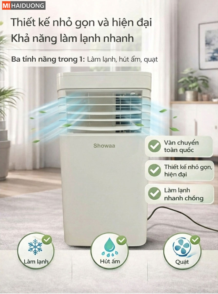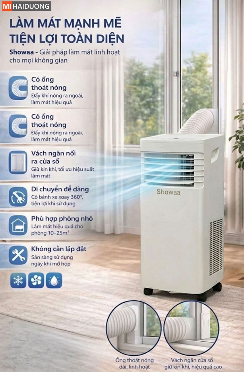 Chiếc máy điều hòa di động Showaa mang đến sự tiện lợi vượt trội, đặc biệt phù hợp với các không gian sống hiện đại: