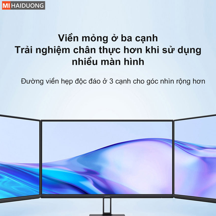 Màn hình máy tính Xiaomi A27i sở hữu thiết kế viền mỏng độc đáo ở ba cạnh, giúp mở rộng tối đa không gian hiển thị và mang lại trải nghiệm thị giác sâu, đắm chìm hơn. Nhờ viền mỏng, màn hình tạo cảm giác rộng rãi và hiện đại, đồng thời giúp người dùng tập trung tốt hơn khi làm việc hoặc giải trí. Đặc biệt, thiết kế này còn rất lý tưởng khi thiết lập đa màn hình, cho phép ghép nối nhiều màn hình Xiaomi A27i lại với nhau một cách liền mạch. Điều này tạo nên không gian hiển thị rộng lớn, đồng nhất và chuyên nghiệp, góp phần nâng cao hiệu suất làm việc cũng như mang lại trải nghiệm giải trí ấn tượng hơn.