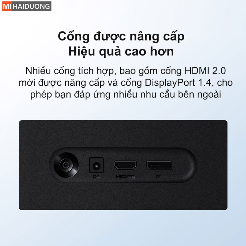 Màn hình máy tính Xiaomi A27i được trang bị nhiều cổng kết nối nâng cấp, bao gồm cổng HDMI 2.0 và DisplayPort 1.4 mới, đáp ứng nhu cầu kết nối đa dạng với các thiết bị ngoại vi. Các cổng kết nối này cung cấp truyền tín hiệu hiển thị nhanh hơn và ổn định hơn, giúp cải thiện hiệu suất làm việc của bạn. Với khả năng kết nối linh hoạt và hiệu quả cao, màn hình Xiaomi A27i là lựa chọn lý tưởng cho những ai cần một giải pháp kết nối đa năng và hiệu suất tối ưu trong công việc.