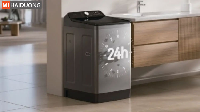 - Hẹn giờ giặt linh hoạt (2 – 24 giờ): Cho phép bạn bỏ đồ vào máy từ tối hôm trước và hẹn giờ để máy hoàn tất chu trình giặt đúng vào lúc bạn thức dậy vào sáng hôm sau.