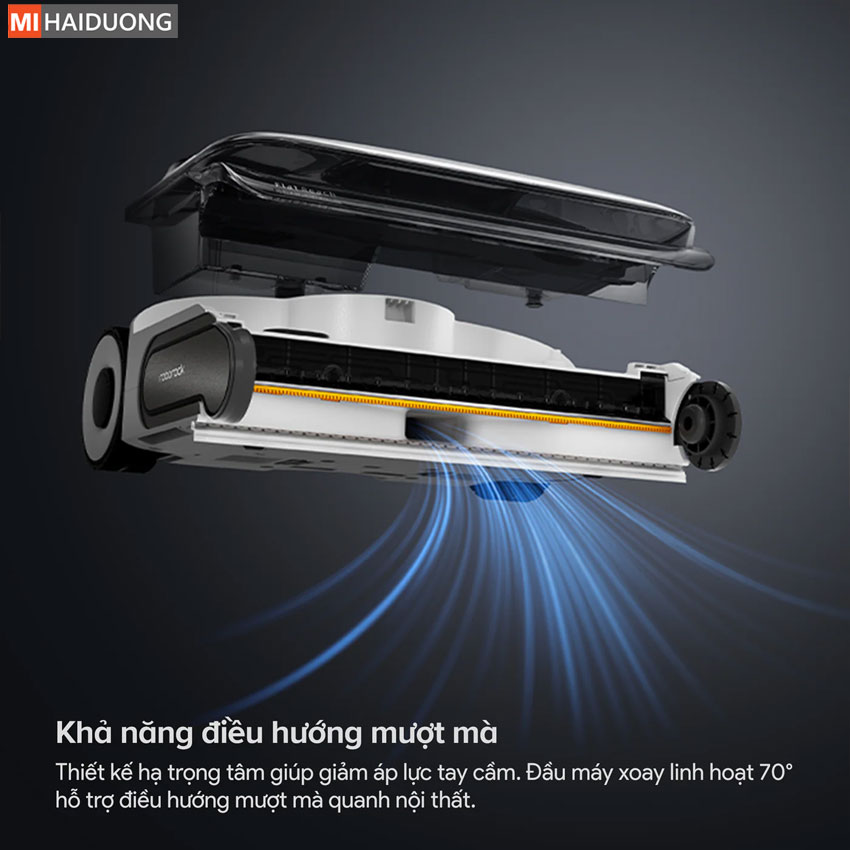 • Bánh xe trợ lực & Đầu cọ xoay 70°: Thao tác đẩy lướt nhẹ tênh, điều hướng linh hoạt quanh đồ đạc.