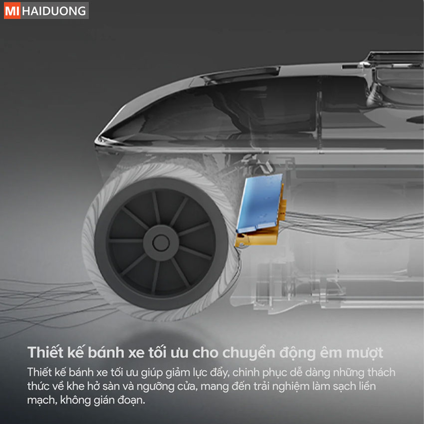 Máy hút bụi lau nhà cầm tay Roborock F25 Gen 2 được thiết kế với hệ thống bánh xe giúp tối ưu lực đẩy, giúp máy di chuyển nhẹ nhàng, giảm đáng kể áp lực khi sử dụng trong thời gian dài. Không chỉ vậy, thiết bị còn có khả năng vượt qua các khe hở nhỏ và ngưỡng cửa một cách mượt mà, đảm bảo quá trình làm sạch không bị gián đoạn, đồng thời gia tăng độ bền cho toàn bộ hệ thống.