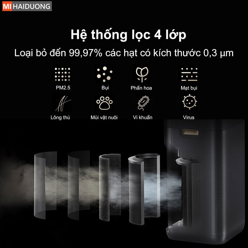 - Bộ lọc 4 trong 1 loại bỏ bụi mịn, vi khuẩn và tác nhân gây dị ứng