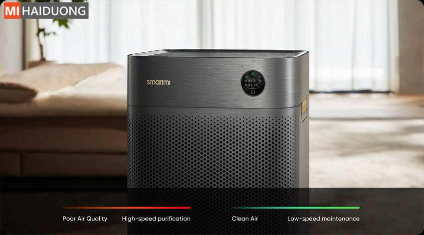 Để duy trì hiệu quả lọc mà không cần can thiệp thủ công, Smartmi Air Purifier 3 được trang bị hệ thống cảm biến đa dạng, bao gồm cảm biến PM2.5, PM10, cảm biến nhiệt độ và độ ẩm. Dữ liệu được phân tích theo thời gian thực và hiển thị trên màn hình LED lớn, giúp người dùng dễ dàng nắm bắt tình trạng không khí mà không cần mở ứng dụng.