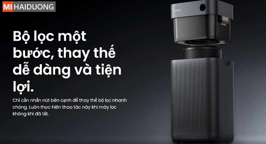 Việc thay thế bộ lọc được hoàn thiện theo cơ chế one-touch, chỉ cần một thao tác để mở và lắp đặt, đảm bảo người dùng không gặp khó khăn trong quá trình bảo trì. Đây là chi tiết nhỏ nhưng thể hiện sự chỉn chu của Smartmi trong trải nghiệm sử dụng.