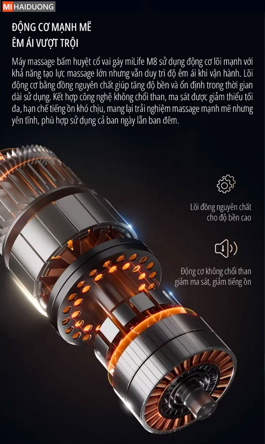 Thiết kế nhỏ gọn nhưng đầy sức mạnh, mang đến trải nghiệm đeo siêu nhẹ và thoải mái. Nhờ ứng dụng công nghệ nén không gian tiên tiến, toàn bộ cấu trúc bên trong được tối ưu, nâng cao hiệu quả sử dụng từng chi tiết. Các bộ phận vận hành ăn khớp chặt chẽ, tạo ra lực massage mạnh mẽ và ổn định hơn. Thân máy được thu gọn và giảm trọng lượng đáng kể, giúp giảm áp lực lên vùng cổ và vai, cho phép đeo lâu mà không gây mỏi hay khó chịu, phù hợp với nhu cầu sử dụng hằng ngày.