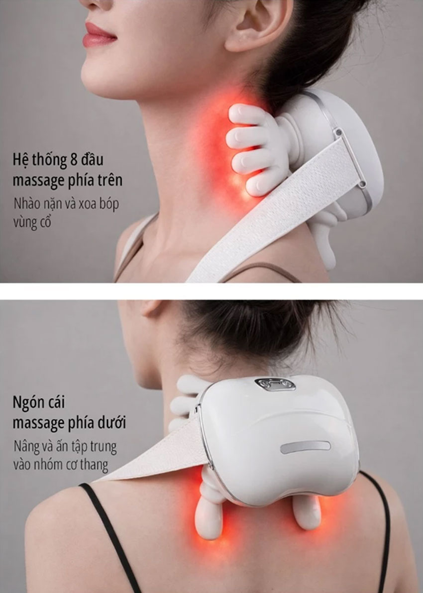 - Ứng dụng đa năng: Ngoài vùng cổ vai gáy, bạn có thể sử dụng máy để massage cho các vùng khác như bắp chân, thắt lưng hoặc đùi.