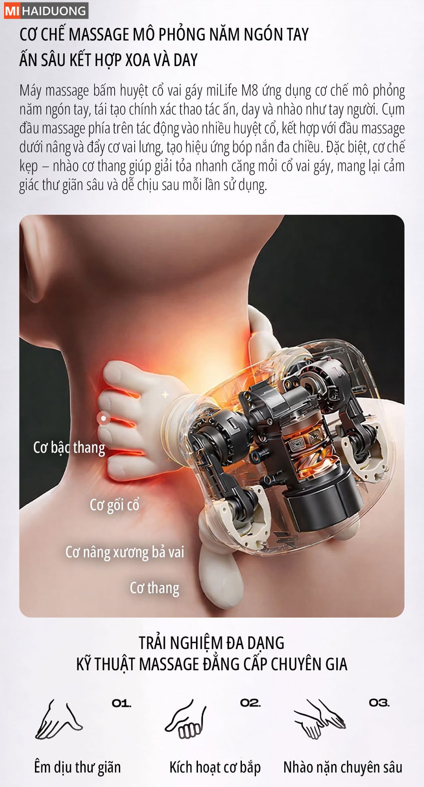 Máy massage cổ vai gáy miLife M8 – Mô phỏng tay người