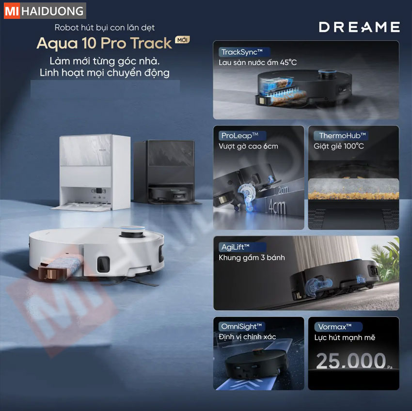 Ưu điểm nổi bật của robot hút bụi lau nhà Dreame Aqua 10 Pro Track