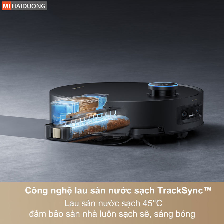 Robot hút bụi lau nhà Dreame Aqua 10 Pro Track được trang bị công nghệ lau sàn tiên tiến TrackSync™, với khả năng phun nước nóng liên tục ở nhiệt độ 45°C. Nước sạch được làm nóng và phân phối đều lên giẻ lau dạng băng chuyền (track mop) thông qua hệ thống điều khiển thông minh, giúp đánh bật các vết bẩn cứng đầu như vết dầu mỡ, chất lỏng khô bám dính lên sàn nhà. Hệ thống này còn có ống dẫn nước làm mát bao quanh mô-tơ, vừa giúp bảo vệ thiết bị vừa duy trì hiệu suất ổn định trong suốt quá trình hoạt động.