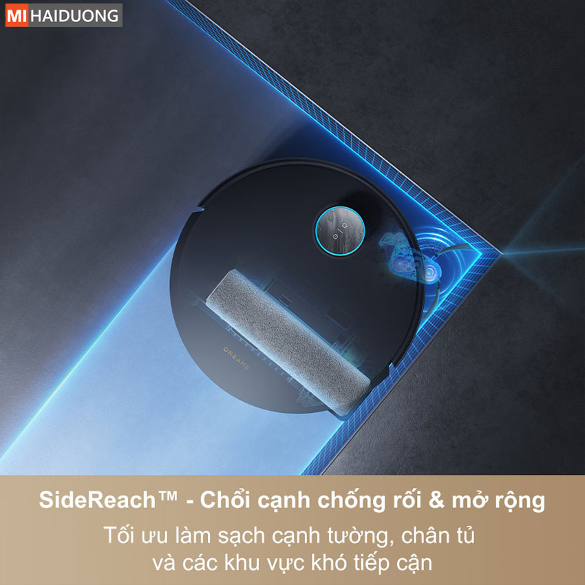 Giẻ lau dạng con lăn dẹt trên Dreame Aqua 10 Pro Track có thể kéo dài ra sát các mép tường, giúp robot lau sạch hiệu quả đến khoảng cách 8mm sát góc, cạnh tường, nơi mà những thiết bị khác thường bỏ sót. Nhờ đó mà toàn bộ không gian trong nhà bạn, kể cả những khu vực khó tiếp cận đều được làm sạch một cách kỹ lưỡng.