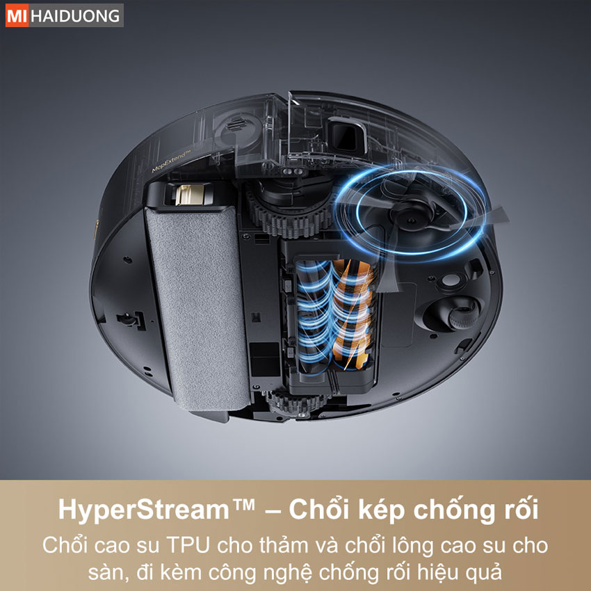 Công nghệ khí động học độc quyền giúp loại bỏ tóc dài tới 50cm khỏi chổi, đạt hiệu quả gỡ rối lên đến 100%. Nhờ đó, robot hoạt động trơn tru trên cả sàn cứng lẫn thảm mà không bị kẹt do tóc rối.
