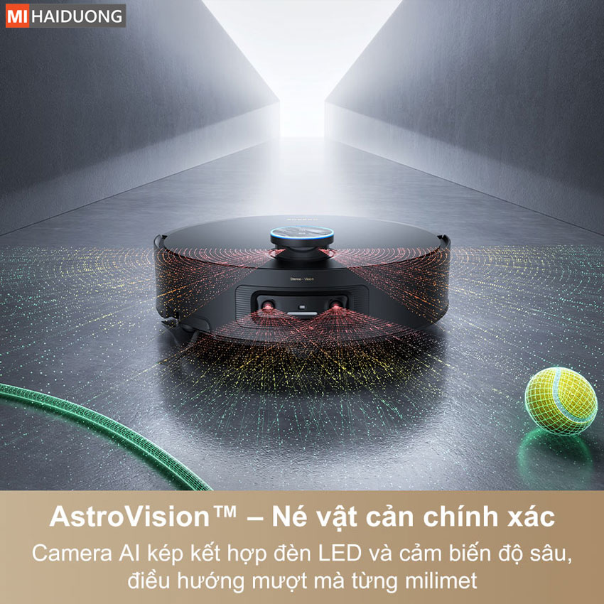 Trên robot hút bụi lau nhà Dreame Aqua 10 Pro Track được tích hợp công nghệ điều hướng AstroVision™ chủ động cho khả năng điều hướng thông minh. Trong đó, nó được trang bị 2 camera 3D góc rộng 160° độ phân giải 1600×1200 pixel. Công nghệ này mô phỏng cách mắt người quan sát, giúp Dreame Aqua 10 Pro Track nhận diện không gian xung quanh với sai số chỉ khoảng 1mm. Nhờ vậy, Dreame Aqua 10 Pro Track vừa có thể lập bản đồ 3D không gian nhanh chóng, vừa có thể lên lộ trình tối ưu và tránh né chướng ngại vật chính xác.
