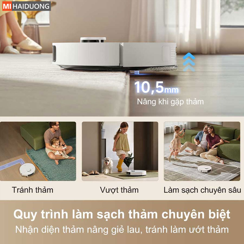 - Khả năng tự nâng giẻ lau thông minh 10.5mm bảo vệ thảm tối ưu