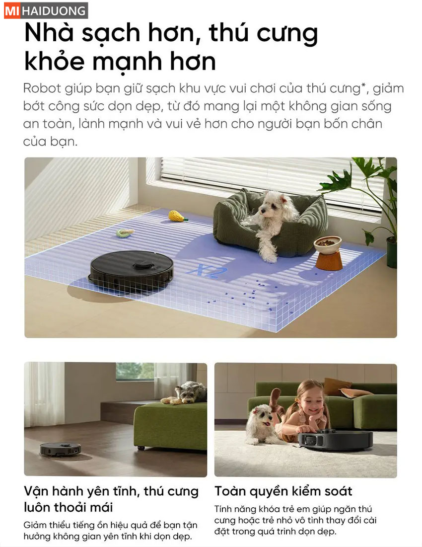 - Chế độ Pet Care: Double cleaning cho khu vực thú nuôi.