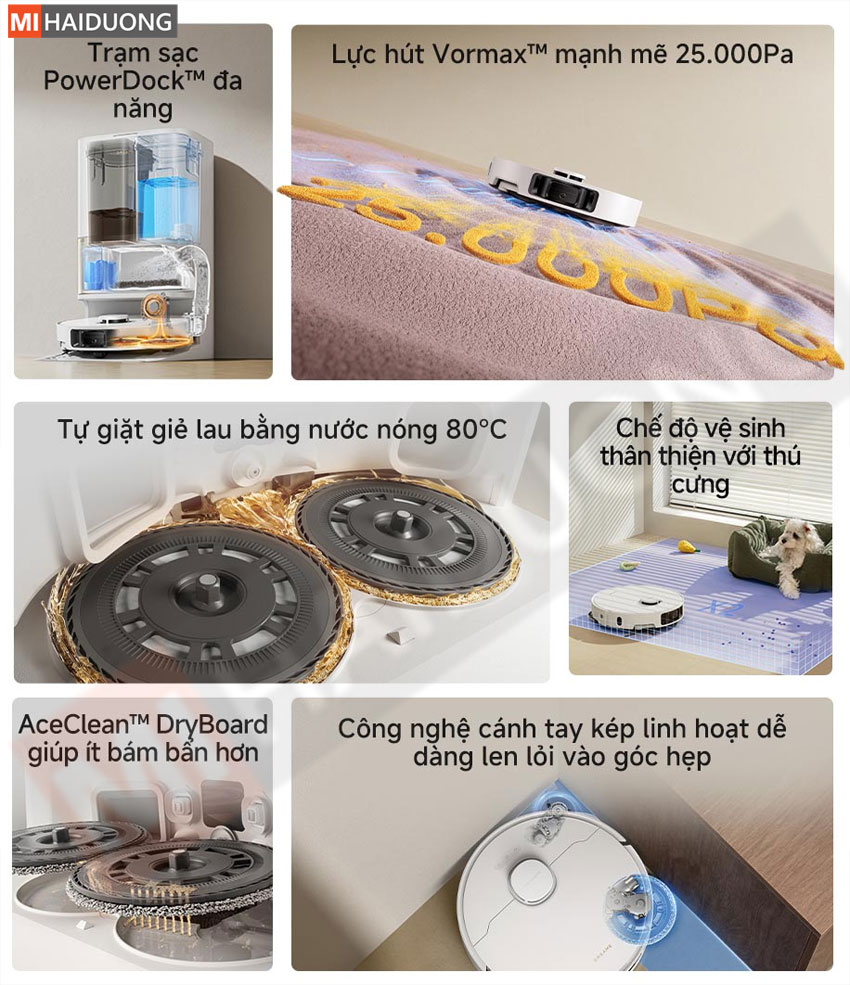 - Lực hút Vormax™ 25.000Pa cho khả năng làm sạch ấn tượng