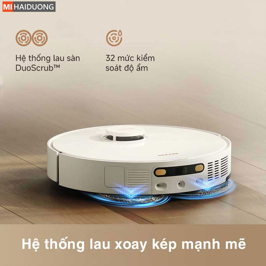 Dreame L50 Ultra CE được trang bị bộ đôi giẻ lau xoay tốc độ cao DuoScrub™ kết hợp cùng lực ép mạnh giúp đánh bay vết bẩn cứng đầu, kể cả những vết bám lâu ngày. Hệ thống này còn được hỗ trợ bởi 32 mức điều chỉnh độ ẩm chính xác, giúp kiểm soát lượng nước vừa đủ cho từng loại sàn từ gỗ, gạch đến đá hoa. Nhờ đó, sàn luôn sạch sâu nhưng khô nhanh và an toàn với thú cưng, không lo trơn trượt hay ẩm mốc.