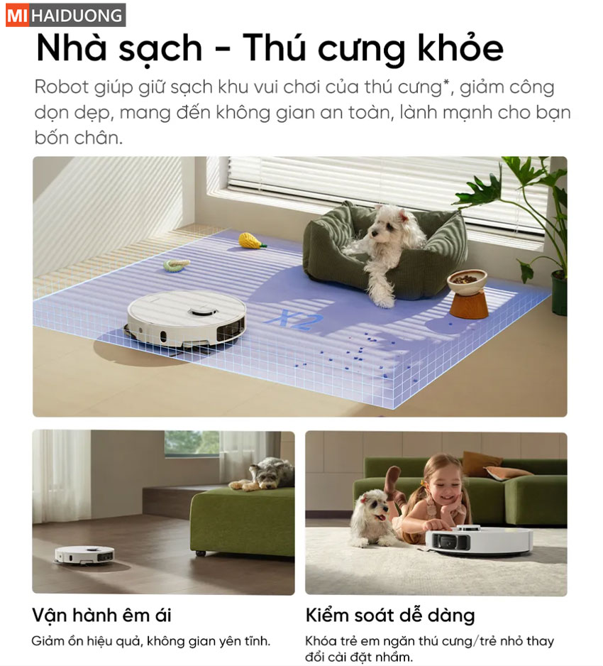 - Tích hợp chế độ làm sạch thân thiện với thú cưng