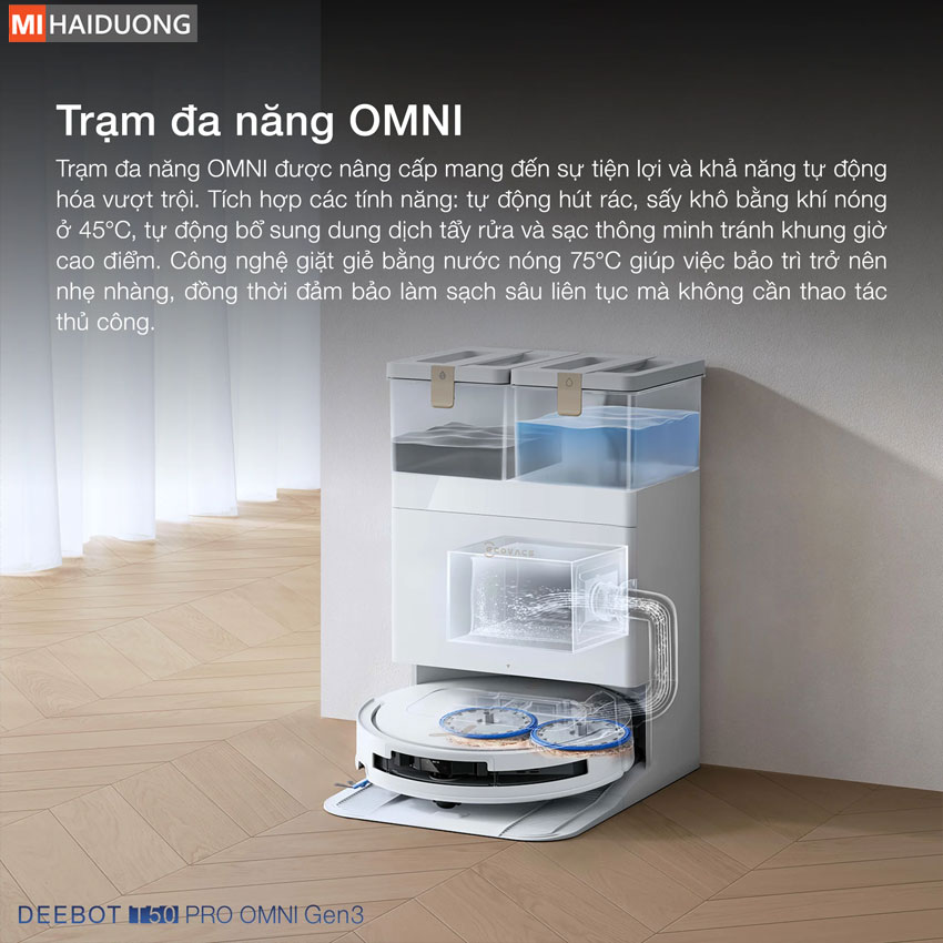 - Trạm OMNI đa năng tự động giặt giẻ nước nóng, sấy khô khí nóng