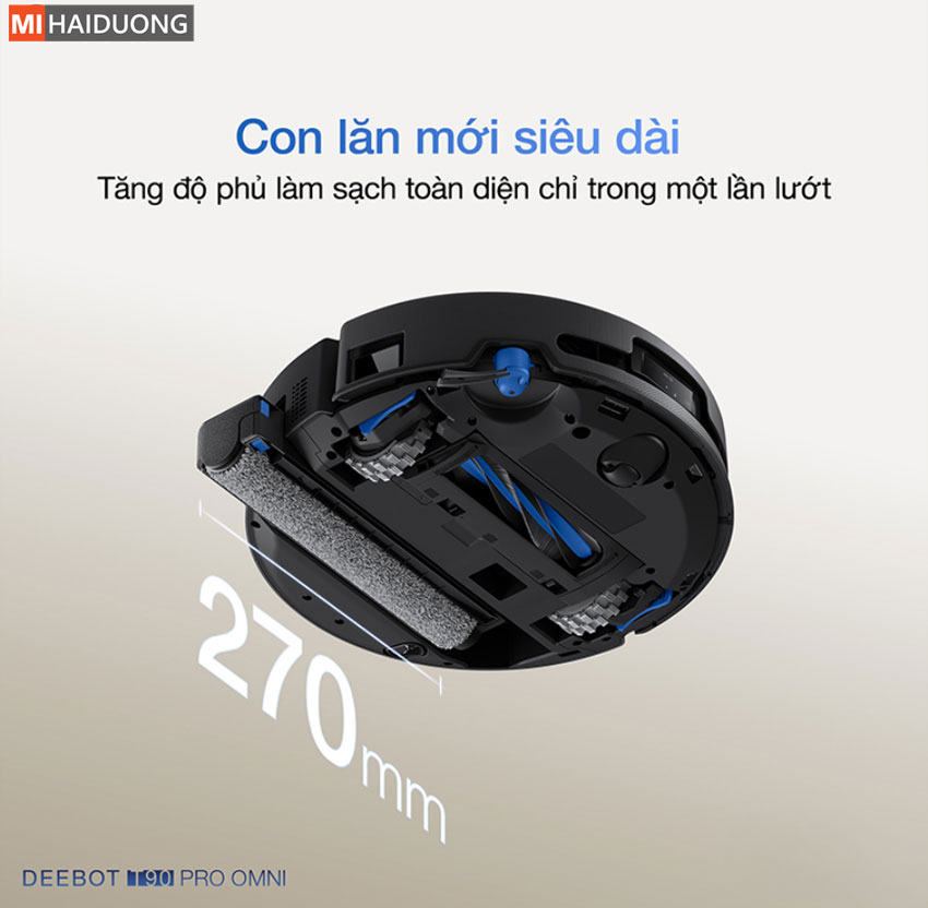 Bên cạnh đó, con lăn OZMO ROLLER 3.0 – thế hệ thứ 3 được mở rộng 50%, đạt 27 cm, giúp tăng diện tích tiếp xúc và hiệu suất làm sạch. Đồng thời, Ecovacs Deebot T90 Pro Omni sở hữu hệ thống bơm khí hiệu suất cao liên tục cấp nước sạch, kết hợp 16 vòi phun áp lực cao tạo 32 tia nước phân bổ đồng đều, nhanh chóng hòa tan và loại bỏ các vết bẩn cứng đầu.