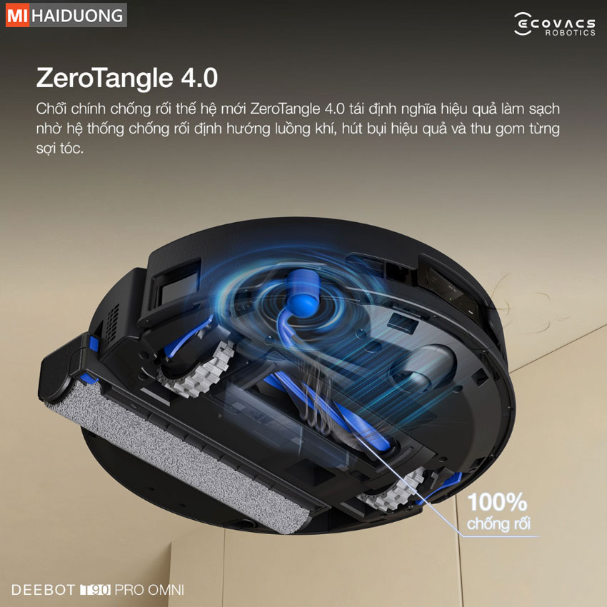 Cuối cùng, kết hợp cùng lực hút mạnh mẽ 30.000Pa, hệ thống chổi chính của Ecovacs Deebot T90 Pro Omni mới mang đến hiệu quả thu gom tóc và bụi bẩn gần như tuyệt đối, giúp sàn nhà luôn sạch bóng mà bạn không còn phải tốn thời gian gỡ tóc thủ công.