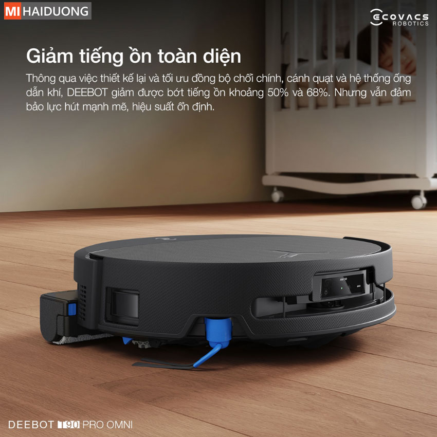 Nhờ đó, Ecovacs Deebot T90 Pro Omni mang lại trải nghiệm dọn dẹp yên tĩnh rõ rệt, nâng cao sự thoải mái trong sinh hoạt hằng ngày. Dù vận hành êm ái, robot vẫn khai thác trọn vẹn sức mạnh của công nghệ hút luồng khí lớn tăng cường BLAST, đảm bảo lực hút mạnh mẽ, hiệu suất cao mà không gây ảnh hưởng đến không gian sống hay nhịp sinh hoạt của gia đình bạn.