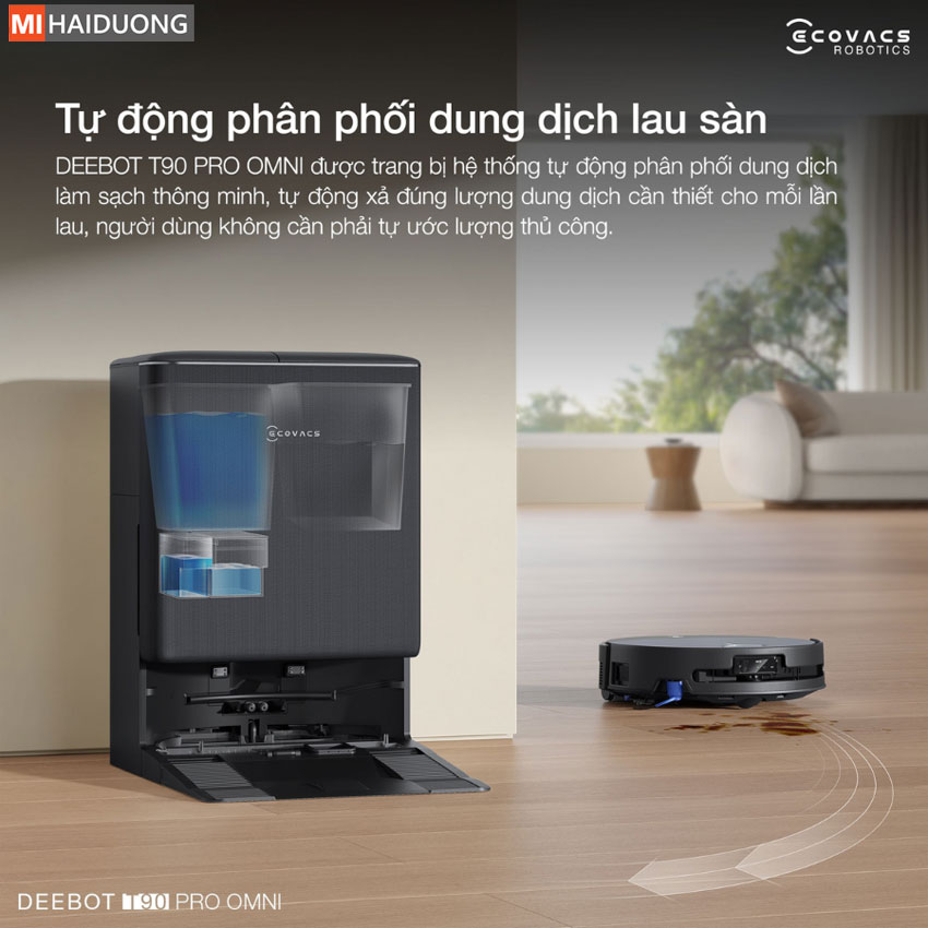 Trong suốt quá trình vận hành, dung dịch được pha trộn liên tục để xử lý hiệu quả từ các vết bẩn thường ngày đến dầu mỡ, nước sốt bám dính, mang lại bề mặt sàn sạch sâu, thơm mát và đồng đều. Với Ecovacs Deebot T90 Pro Omni ,tất cả diễn ra hoàn toàn tự động, giúp bạn tận hưởng trải nghiệm dọn dẹp rảnh tay, tiện nghi và đẳng cấp mỗi ngày.