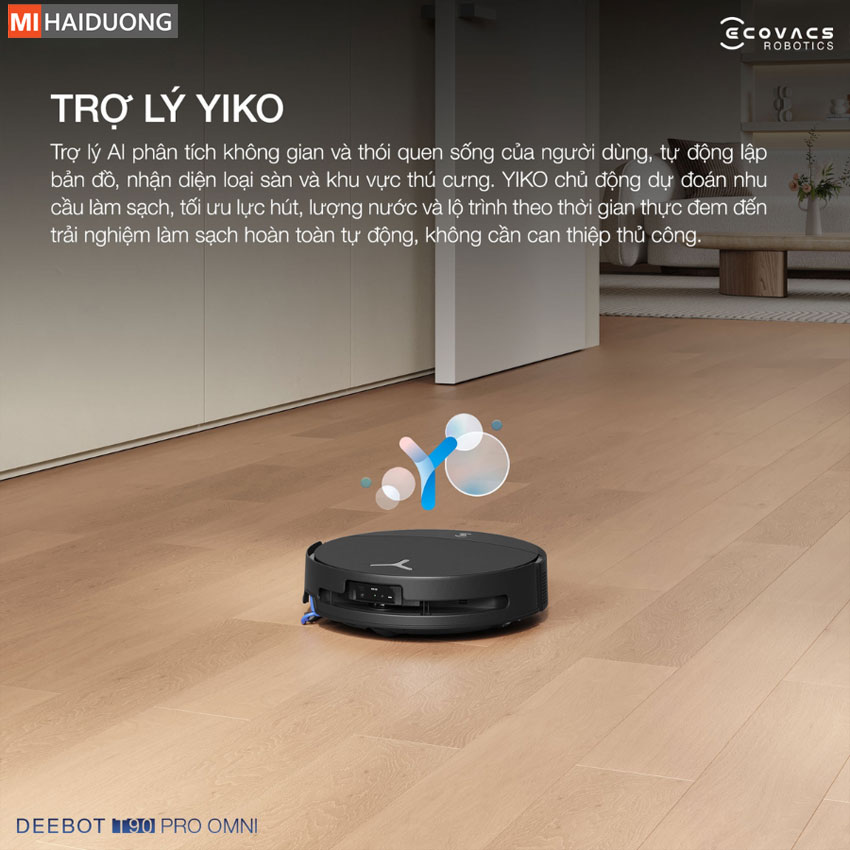 AGENT YIKO trên Ecovacs Deebot T90 Pro Omni không chỉ là trợ lý giọng nói, mà là hệ thống AI tự tiến hóa với khả năng suy luận logic bậc cao. Thay vì vận hành theo kịch bản cố định, AGENT YIKO có thể phân tích đa lớp thói quen sinh hoạt, cấu trúc không gian, tự động lập bản đồ, nhận diện loại sàn và khu vực của thú cưng để tối ưu hóa chiến lược dọn dẹp.