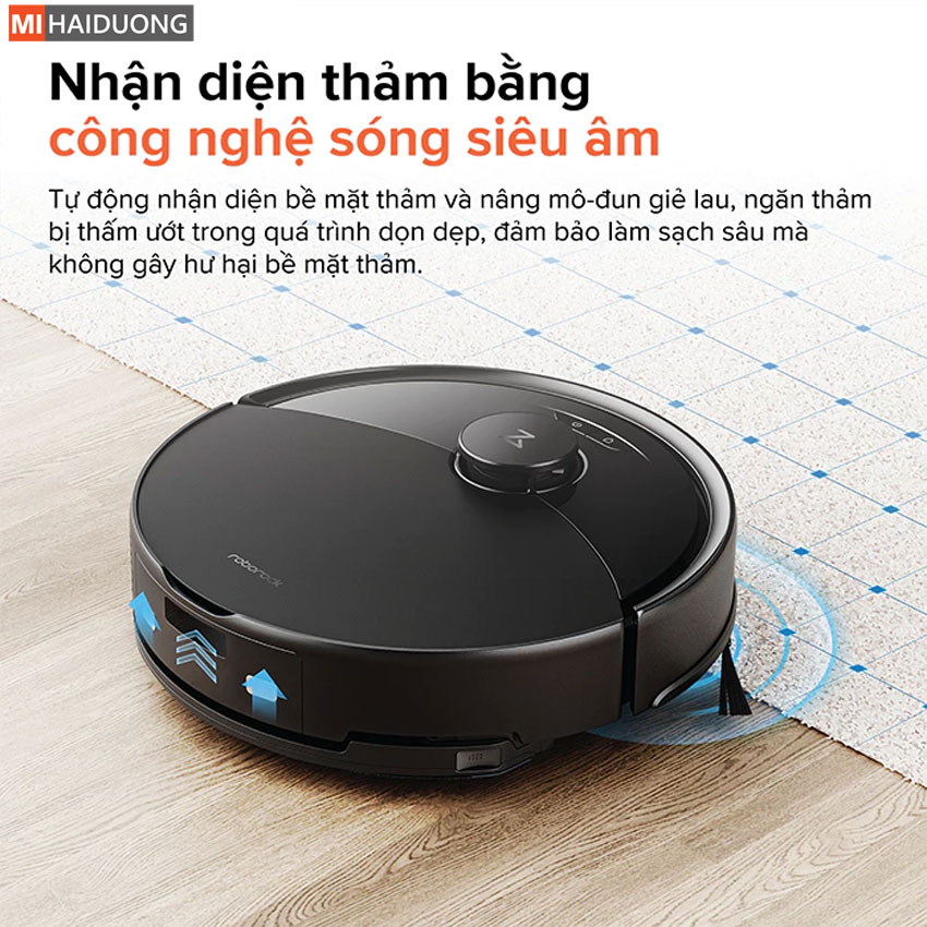 Một trong những điểm nổi bật trên robot hút bụi lau nhà Roborock Q10 VF chính là công nghệ nhận diện thảm bằng sóng siêu âm thông minh. Khi di chuyển đến khu vực có thảm, robot sẽ tự động phát hiện và điều chỉnh chế độ làm sạch phù hợp. Nếu đang lau, giẻ lau sẽ được nâng lên ngay lập tức, giúp tránh làm ướt và bảo vệ bề mặt thảm hiệu quả. Không chỉ vậy, thiết bị còn tự động tăng lực hút khi di chuyển trên thảm, giúp làm sạch sâu bụi bẩn ẩn trong từng sợi vải mà không ảnh hưởng đến kết cấu. Nhờ đó, robot vừa đảm bảo hiệu quả lau sàn tối ưu, vừa giữ cho thảm luôn khô ráo, sạch sẽ và bền đẹp theo thời gian.