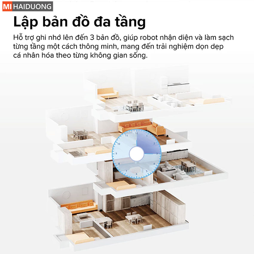 Robot hút bụi lau nhà Roborock Q10 VF mang đến trải nghiệm dọn dẹp tiện lợi với khả năng ghi nhớ đến 3 bản đồ khác nhau, đặc biệt phù hợp cho nhà nhiều tầng. Khi được đặt ở bất kỳ khu vực nào, robot có thể nhanh chóng nhận diện không gian và áp dụng lộ trình làm sạch đã được tối ưu trước đó mà không cần thiết lập lại. Tính năng này không chỉ giúp tiết kiệm thời gian mà còn nâng cao hiệu quả làm sạch, mang lại trải nghiệm cá nhân hóa theo từng khu vực trong ngôi nhà.