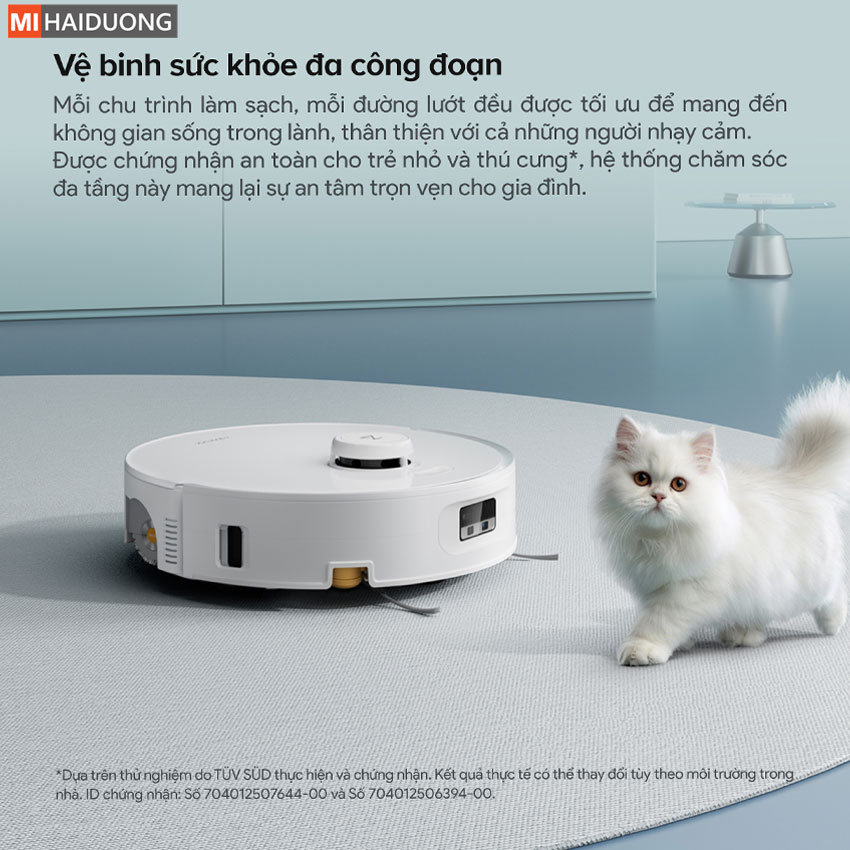 Công nghệ này đã được kiểm chứng bởi SGS và TÜV Rheinland (Đức) với chứng nhận 0% tỉ lệ rối tóc, đảm bảo trải nghiệm vệ sinh mượt mà, không gián đoạn. Với khả năng hút tóc và lông tối ưu, robot Qrevo Curv 2 Flow giúp bạn duy trì không gian sạch sẽ, thoáng mát, để thú cưng thoải mái vận động mà không gây phiền toái trong việc dọn dẹp.