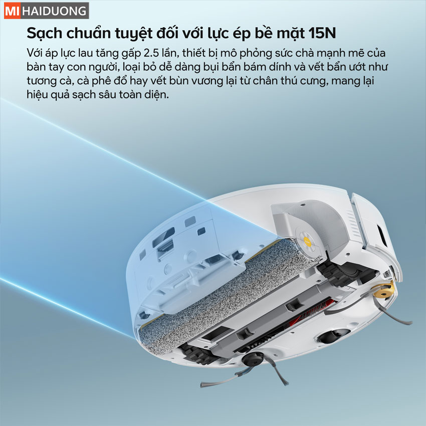 Người dùng có thể thiết lập chế độ khu vực lau riêng với diện tích 4m², cho phép robot tập trung làm sạch kỹ lưỡng tại những vị trí bẩn nhiều như dưới bàn ăn hoặc khu vực bếp. Kết hợp chổi chính và chổi cạnh đồng thời, robot dễ dàng gom rác ướt, thức ăn rơi vãi và bụi bẩn một cách chính xác.