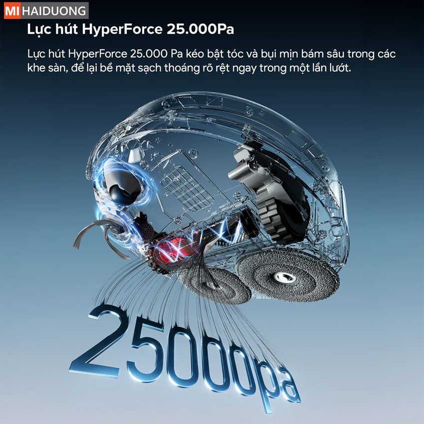 Lực hút cực khủng 25.000Pa: Sức mạnh hút bụi hàng đầu phân khúc, dọn sạch mọi loại rác và bụi mịn.