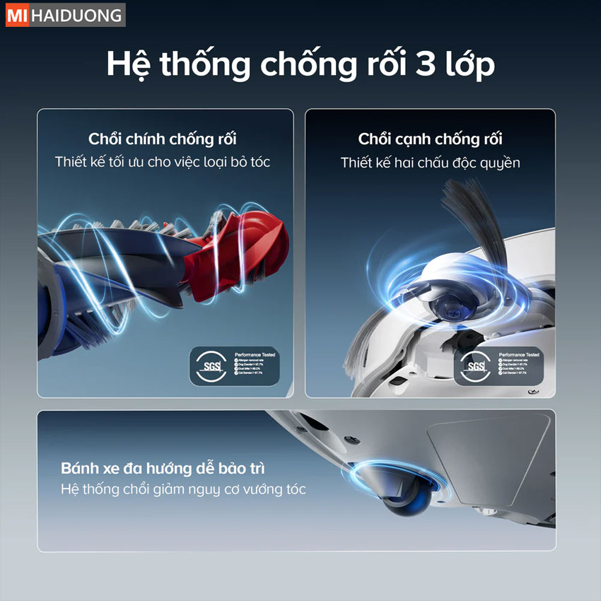 Tóc và lông thú cưng luôn là “kẻ thù” của các robot hút bụi, dễ gây kẹt chổi và làm giảm hiệu suất. Tuy nhiên, Roborock Q Revo Edge 2 đã khắc phục triệt để vấn đề này nhờ hệ thống chống rối kép Dual Anti-Tangle hiện đại. Công nghệ này được thiết kế để hạn chế tối đa tình trạng tóc quấn vào chổi chính và các trục quay trong quá trình hoạt động. Nhờ đó, robot luôn duy trì hiệu suất làm sạch ổn định, giảm thiểu tình trạng gián đoạn hoặc suy giảm lực hút. Không chỉ nâng cao hiệu quả vận hành, Dual Anti-Tangle còn giúp người dùng tiết kiệm đáng kể thời gian vệ sinh thủ công. Việc tháo gỡ tóc rối – vốn là công việc phiền toái – nay được giảm thiểu rõ rệt, mang lại trải nghiệm sử dụng tiện lợi và nhẹ nhàng hơn. Đây là một trong những cải tiến thiết thực, đặc biệt phù hợp với gia đình có thú cưng hoặc người có tóc dài, giúp robot hoạt động bền bỉ và luôn sẵn sàng cho mỗi lần làm sạch.