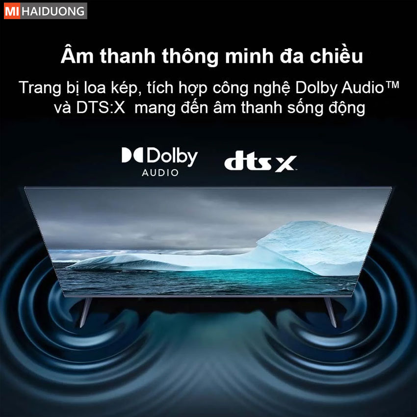 Tivi Xiaomi 43 inch A Google TV 2026 được trang bị 2 loa công suất 10W mỗi loa, tích hợp công nghệ âm thanh tiên tiến Dolby Audio™ và DTS:X, mang đến chất lượng âm thanh trung thực, mạnh mẽ và bao phủ toàn bộ không gian phòng. Thiết kế loa cải tiến giúp tái tạo âm thanh ba chiều rõ ràng, tạo hiệu ứng vòm ấn tượng như trong rạp chiếu phim. Mỗi cú nổ, tiếng gió hay bản nhạc nền đều được truyền tải sắc nét, khiến bạn như đang hiện diện trong chính nội dung đang xem.