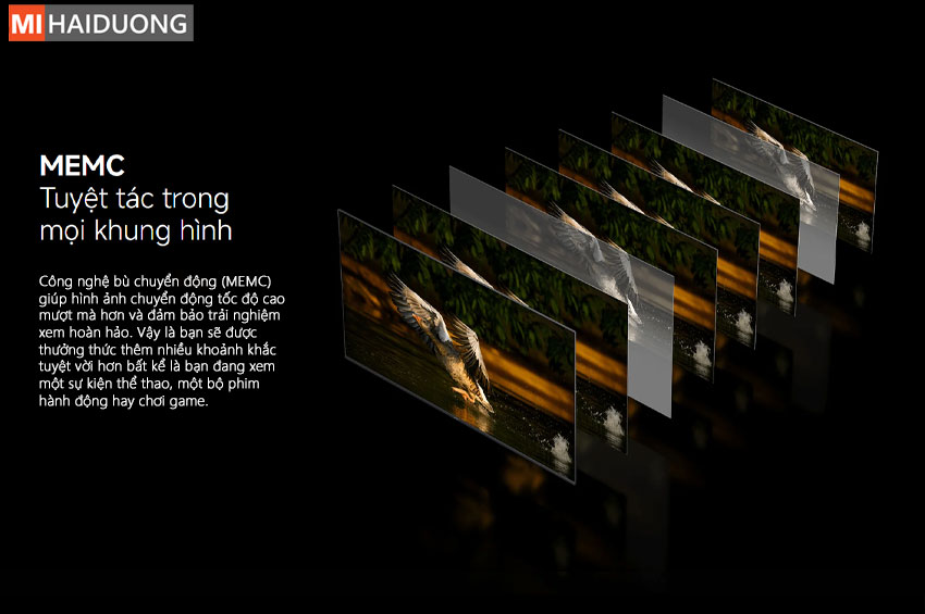 Một trong những điểm nổi bật không thể bỏ qua trên Tivi Xiaomi 43 inch A Google TV 2026 chính là công nghệ MEMC (Motion Estimation, Motion Compensation) – công nghệ chèn khung hình trung gian giúp hình ảnh chuyển động trở nên mượt mà và ổn định hơn. Tính năng này đặc biệt hữu ích khi xem các nội dung có chuyển động nhanh như thể thao, phim hành động hoặc chơi game. Không còn hiện tượng nhòe hình hay giật khung hình, mọi chuyển động được thể hiện trơn tru, mang lại cảm giác tự nhiên và dễ chịu cho người xem. Đây là yếu tố quan trọng giúp trải nghiệm giải trí trở nên trọn vẹn và đẳng cấp hơn.