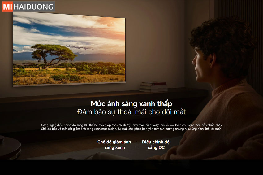 Hiểu rằng trải nghiệm giải trí dài lâu có thể ảnh hưởng đến sức khỏe đôi mắt, Tivi Xiaomi 43 inch A Google TV 2026 tích hợp chế độ Low Blue Light cùng công nghệ DC Dimming hiện đại. Nhờ khả năng kiểm soát độ sáng ổn định và loại bỏ hiện tượng nhấp nháy của đèn nền, chiếc TV này mang đến trải nghiệm hình ảnh mượt mà và dễ chịu hơn cho mắt. Đặc biệt, chế độ lọc ánh sáng xanh giúp giảm thiểu tác động tiêu cực đến mắt, giảm mỏi mắt khi sử dụng lâu dài – phù hợp cho cả người lớn và trẻ nhỏ trong gia đình.