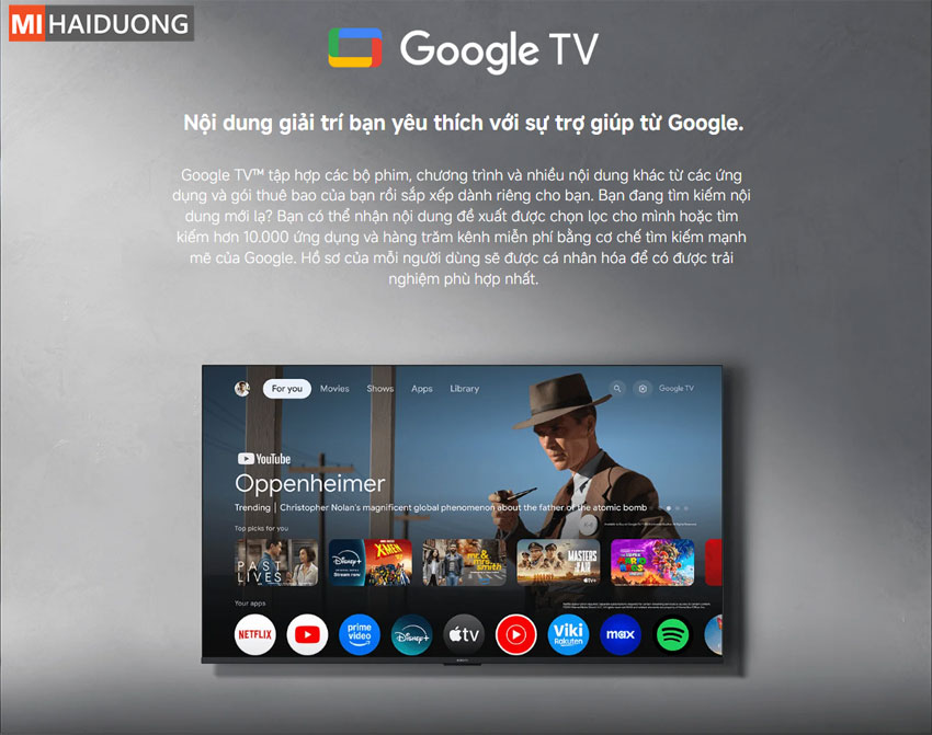 Với nền tảng Google TV™ thông minh, chiếc TV này trở thành trung tâm giải trí đích thực cho cả gia đình. Hệ thống sẽ tổng hợp nội dung từ hơn 10.000 ứng dụng và dịch vụ đăng ký của bạn – từ Netflix, YouTube, Disney+, đến hàng trăm kênh truyền hình miễn phí – sau đó sắp xếp và đề xuất nội dung theo sở thích cá nhân. Nhờ vào khả năng đề xuất thông minh và hồ sơ người dùng riêng biệt, mỗi thành viên trong gia đình đều có thể tận hưởng nội dung phù hợp nhất với mình, từ trẻ nhỏ đến người lớn tuổi.