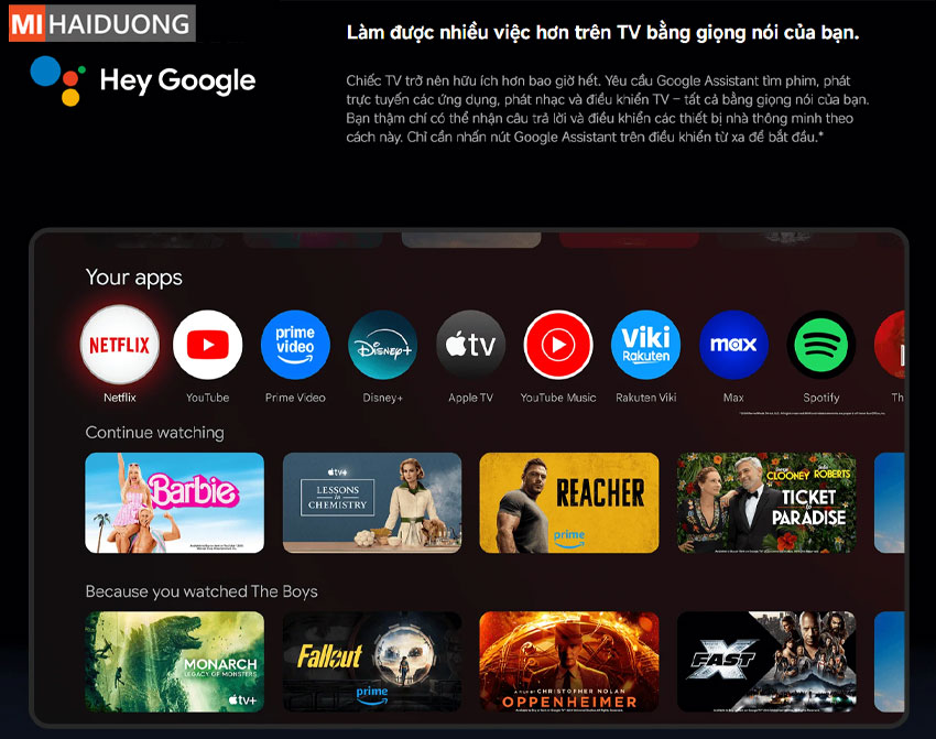 Biến việc sử dụng TV trở nên đơn giản hơn bao giờ hết với trợ lý ảo Google Assistant được tích hợp sẵn. Chỉ cần nhấn nút micro trên remote và ra lệnh bằng giọng nói, bạn có thể tìm kiếm phim, phát nhạc, mở ứng dụng, hỏi thời tiết, hoặc điều khiển các thiết bị nhà thông minh ngay trên TV. Việc chuyển kênh, tra cứu thông tin hay bật/tắt trên Tivi Xiaomi 43 inch A Google TV 2026 giờ đây chỉ cần một câu nói – nhanh chóng, tiện lợi và cực kỳ thông minh.