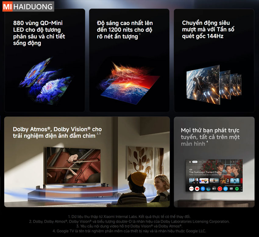 - Chuẩn hình ảnh & âm thanh cao cấp: Hỗ trợ Dolby Vision, HDR10+, HLG và Dolby Atmos cho trải nghiệm như rạp chiếu.