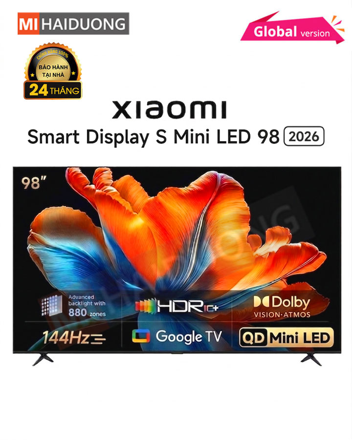 Xiaomi Smart Display S Mini LED 98 2026 là dòng TV cao cấp ra mắt đầu năm 2026, nổi bật với màn hình siêu lớn 98 inch ứng dụng công nghệ QD-Mini LED tiên tiến. Nhờ đó, TV mang đến độ sáng ấn tượng, độ tương phản sâu cùng màu sắc sống động, chân thực trong mọi khung hình. Sở hữu độ phân giải Ultra HD 4K sắc nét, kết hợp bộ xử lý mạnh mẽ, thiết bị đảm bảo hiển thị mượt mà, chi tiết đến từng điểm ảnh. Đồng thời, TV hỗ trợ các chuẩn hình ảnh cao cấp như Dolby Vision và HDR10+, giúp nâng cao trải nghiệm xem phim, giải trí và chơi game. Với thiết kế siêu mỏng, viền màn hình tinh giản, Xiaomi Smart Display S Mini LED 98 2026 không chỉ là thiết bị giải trí mà còn là điểm nhấn hiện đại, mang đến không gian sống đẳng cấp như rạp chiếu phim tại nhà.