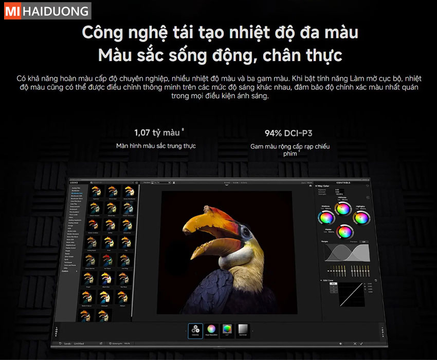 - Chất lượng hình ảnh 4K sắc nét: Kết hợp dải màu rộng (94% DCI-P3) và hơn 1 tỷ màu.