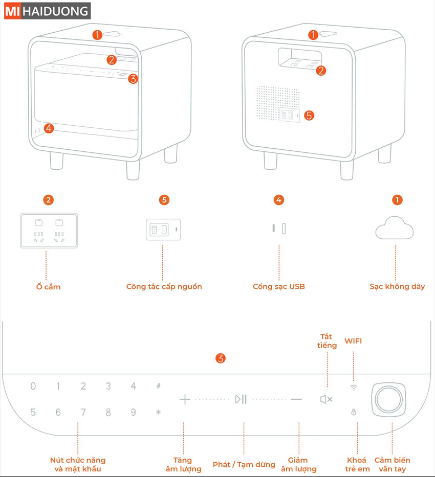Tính năng trên tủ bàn đầu giường 8H G1 Fun Sleep thông minh