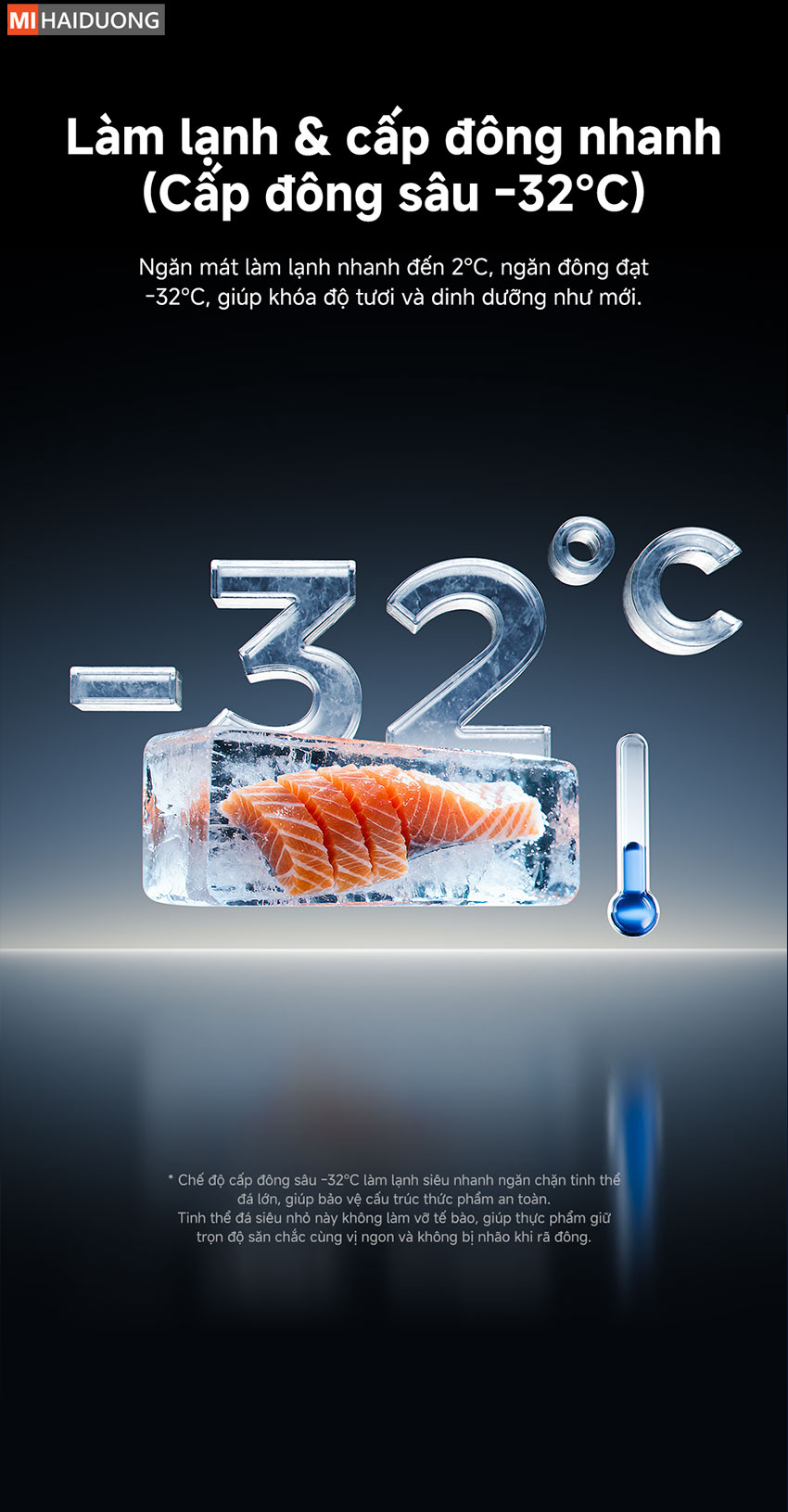 • Công nghệ đông sâu -32°C bảo toàn dinh dưỡng: Giữ thực phẩm tươi ngon lâu hơn, hạn chế phá vỡ cấu trúc tế bào khi cấp đông.