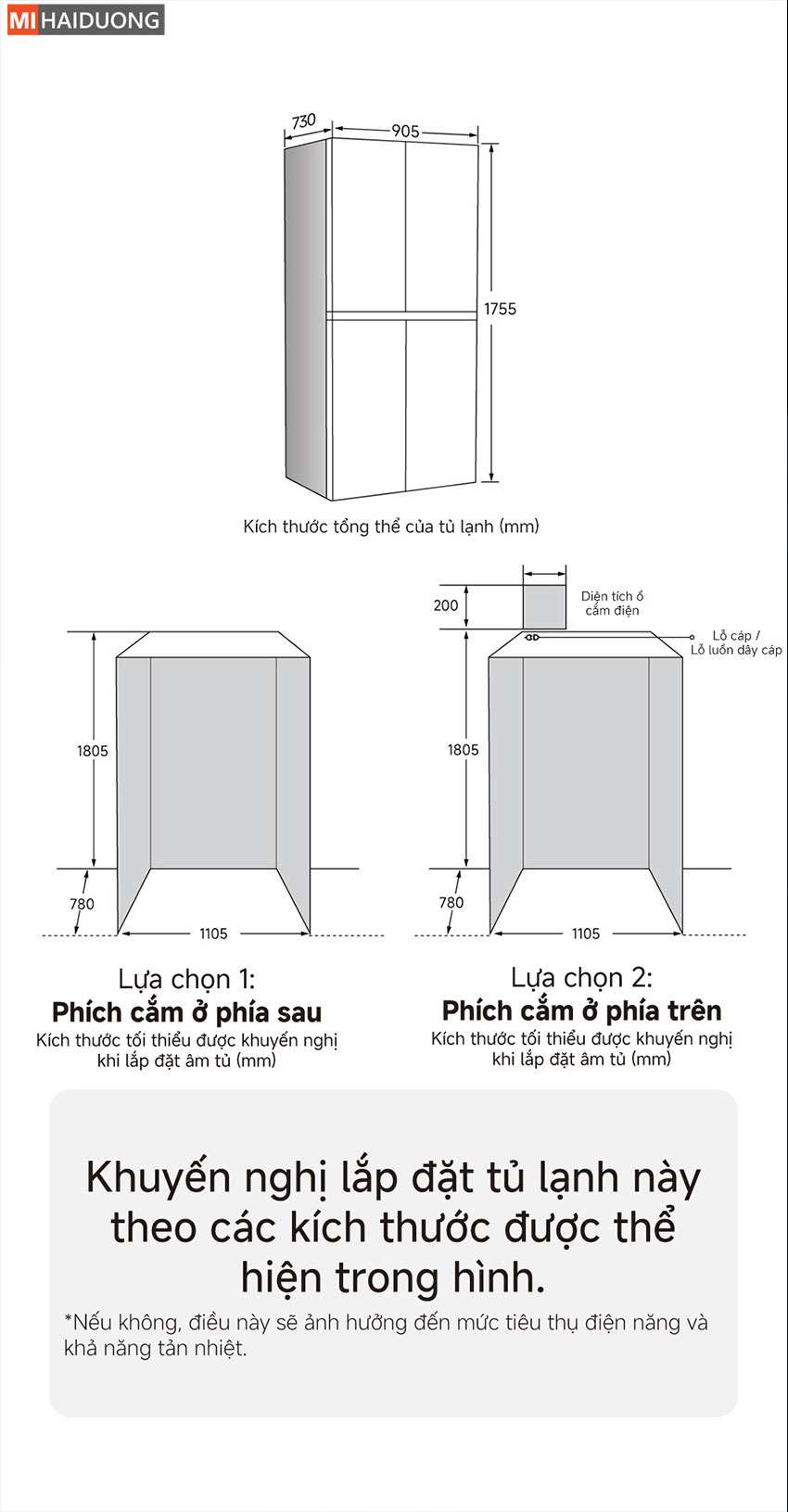 Ngăn mát (2°C ~ 5°C): Trữ thêm rau củ, trái cây, nước giải khát.