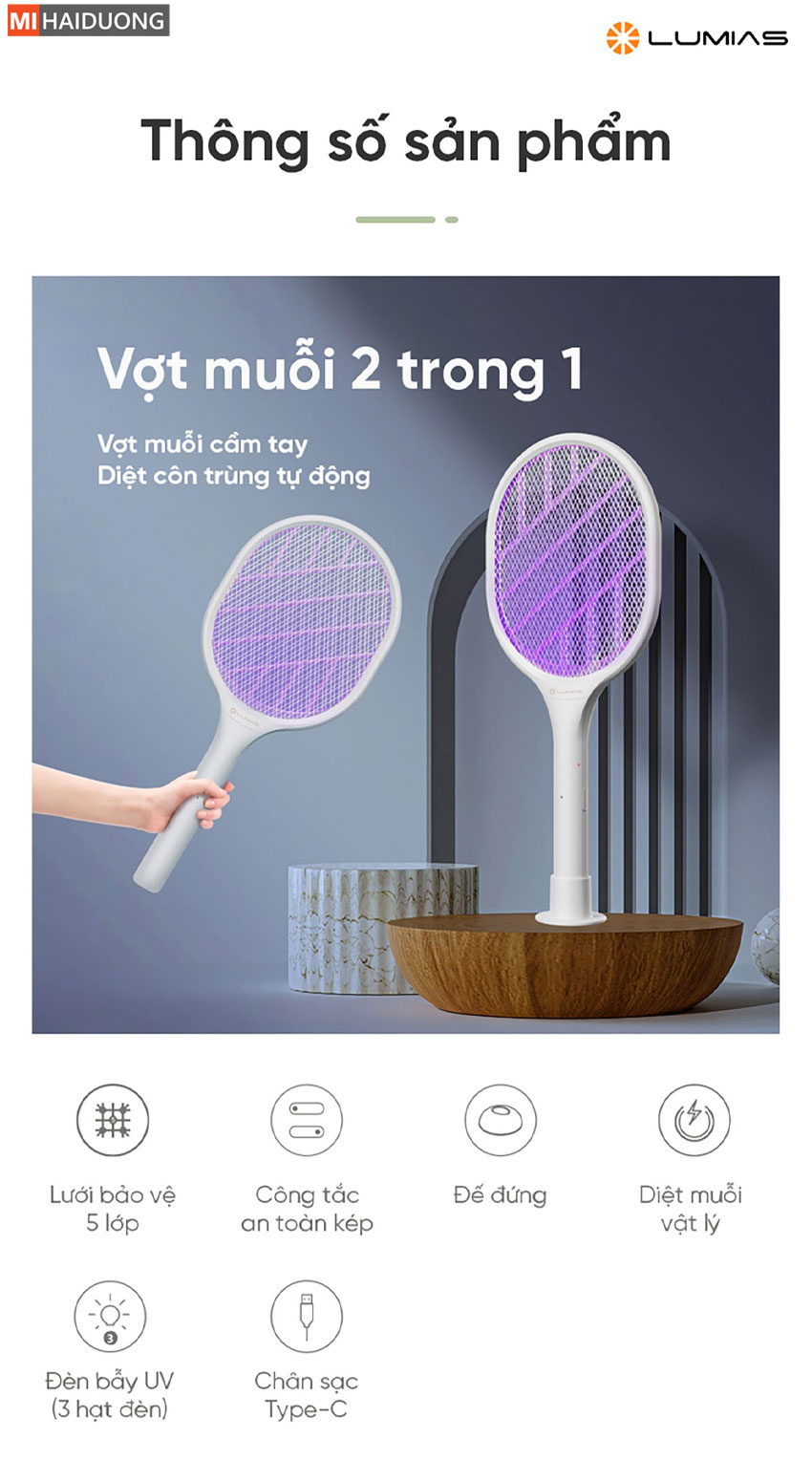 | Tên sản phẩm | Vợt muỗi Lumias ESD-3500W |