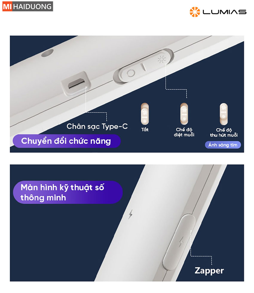 | Tính năng | Đèn UV thu hút muỗi (3 đèn) |