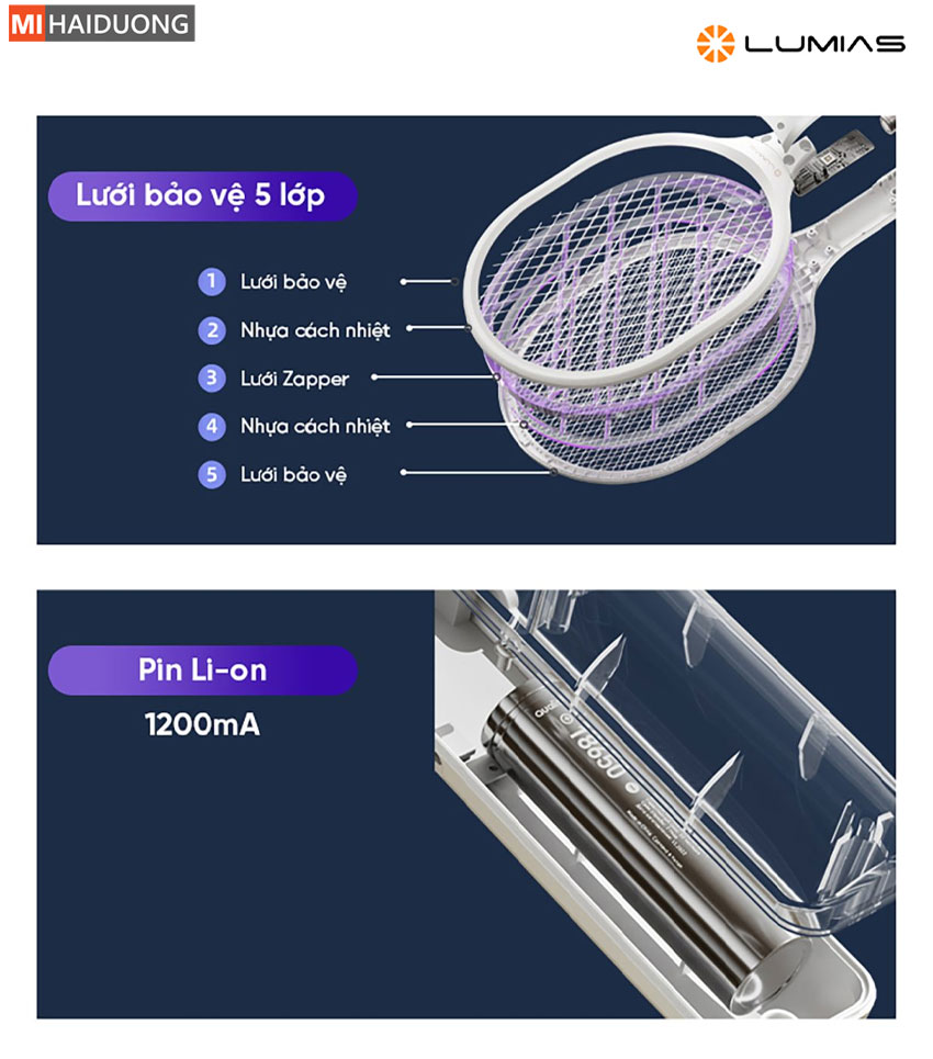Vợt muỗi Lumias ESD-3500W – Pin 1200mAh, đèn UV